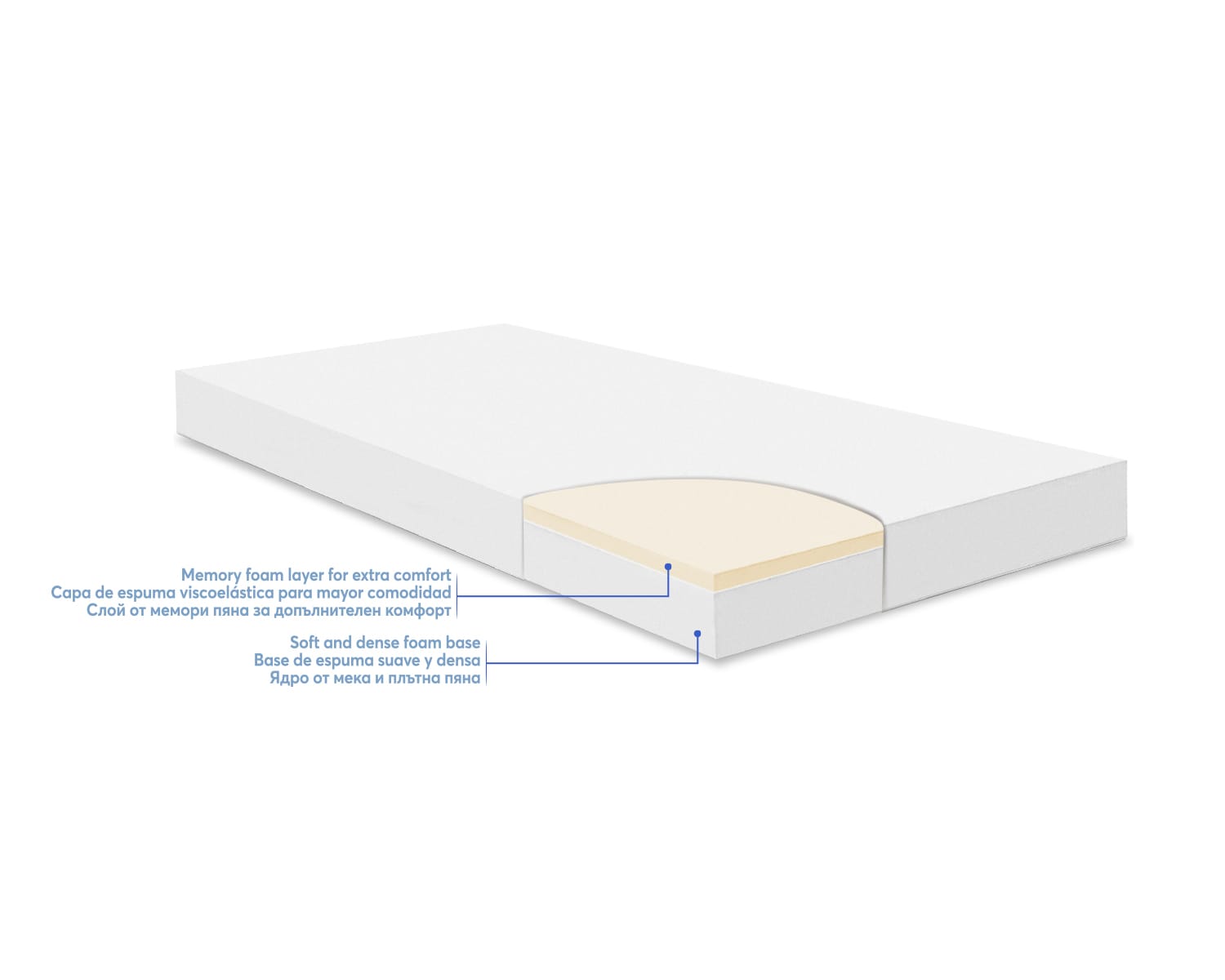 • Пълнеж: полиуретанова пяна, мемори пяна с охлаждащ гел