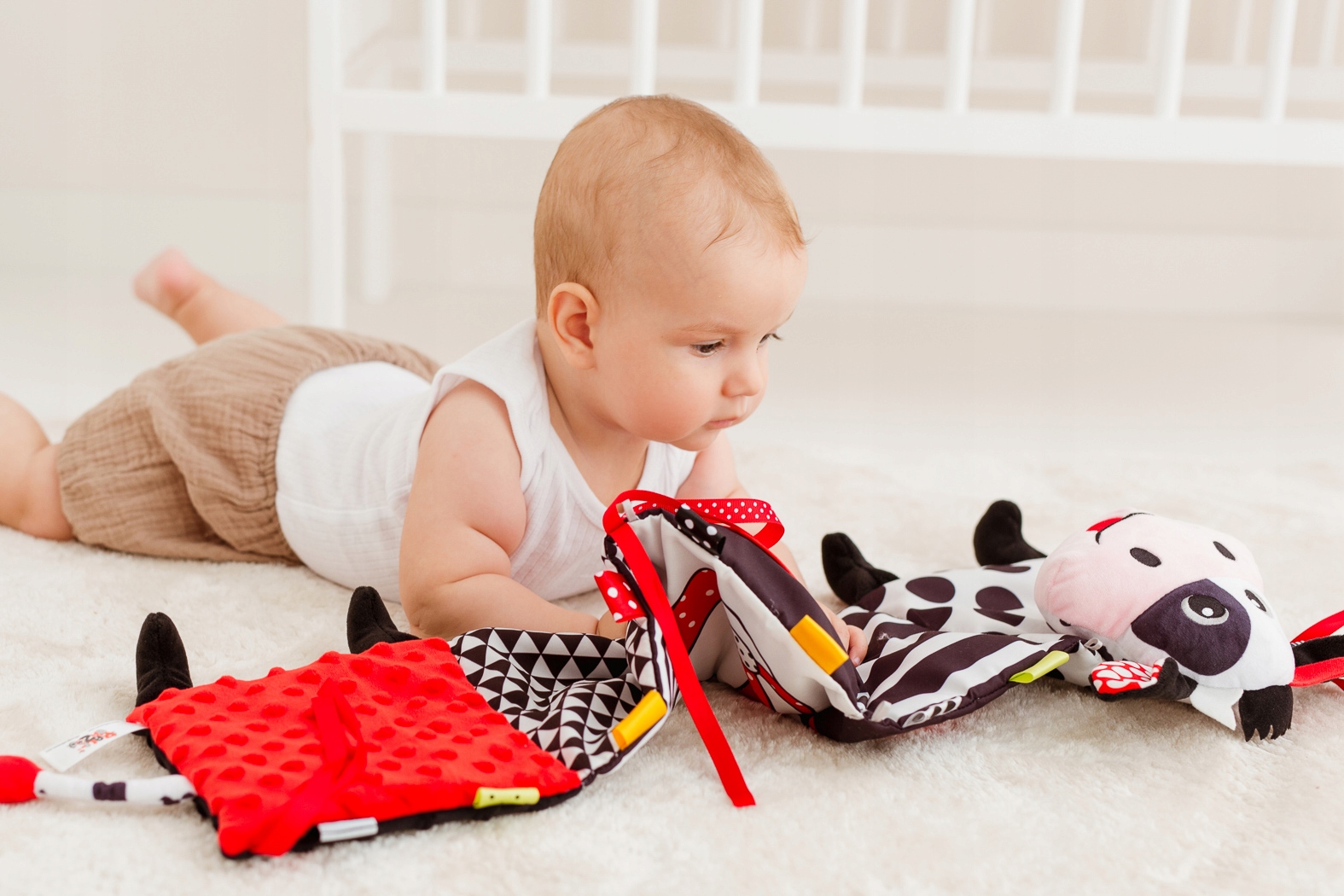 Изработен е от меки, приятни на допир материали с различни текстури, а вътре има изненади.