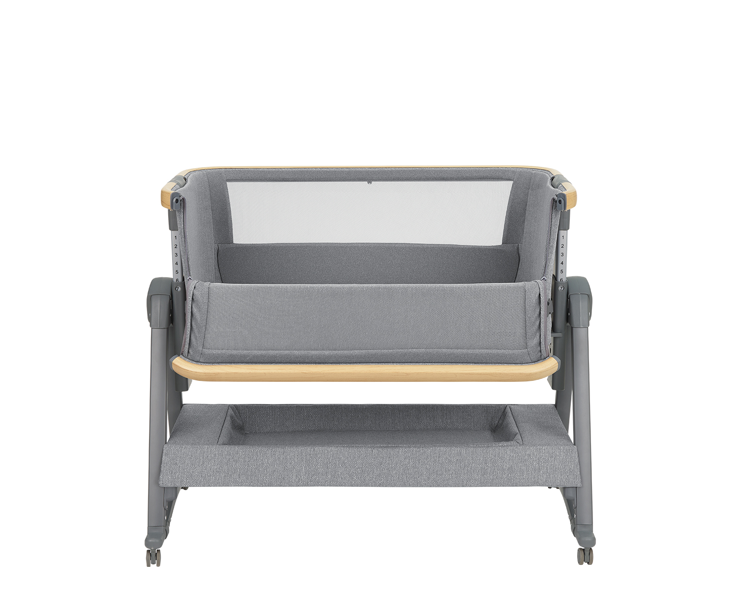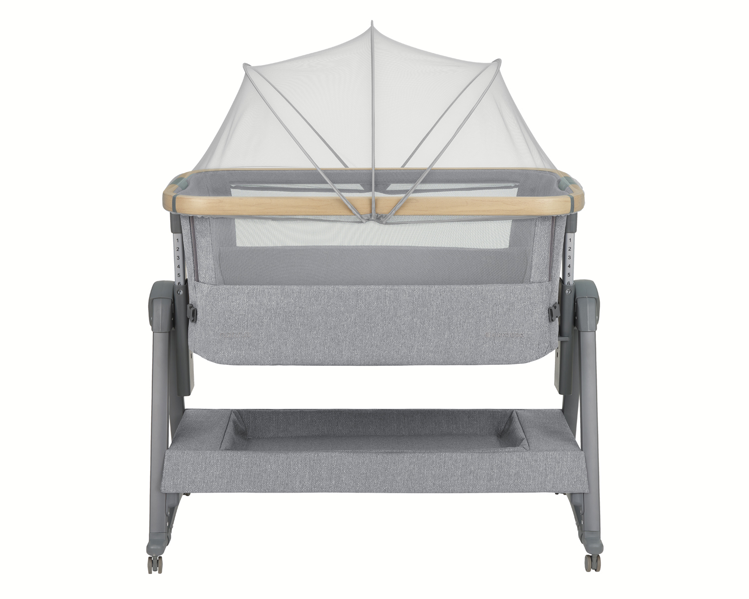 Този модел е разработен с грижа към детето и с желание да улесни всеки ден на родителите. Характеристики като регулиране на височината в 7 позиции, лека алуминиева рамка с покритие, имитиращо дърво, функция „фиксиране към родителското легло“, която позволява на родителя да спи в непосредствена близост до детето си, • Подходяща за деца от раждането до 6 месеца, с тегло до 9 кг, люлееща функция със заключване, която помага за приспиване на бебето, анти рефлукс позиция показват вниманието към детайла и стремежа към комфорт и сигурност. Дизайнът е съобразен с реалните нужди на семействата и с желанието всичко да бъде по-лесно и подредено. Всеки елемент е подбран така, че да улесни грижата за детето и да намали напрежението в забързаното ежедневие. Подходящ е за родители, които ценят качеството, сигурността и спокойствието.