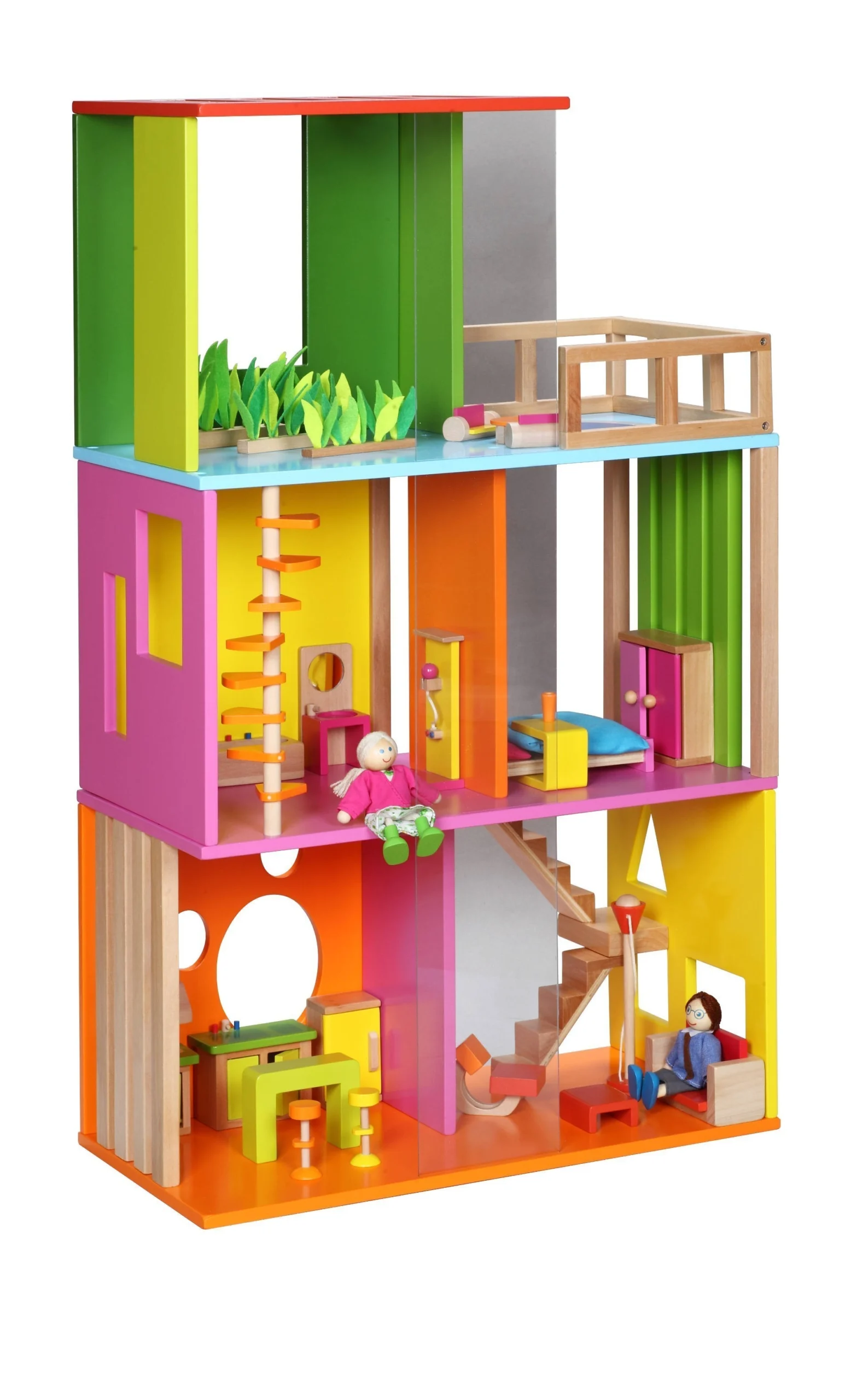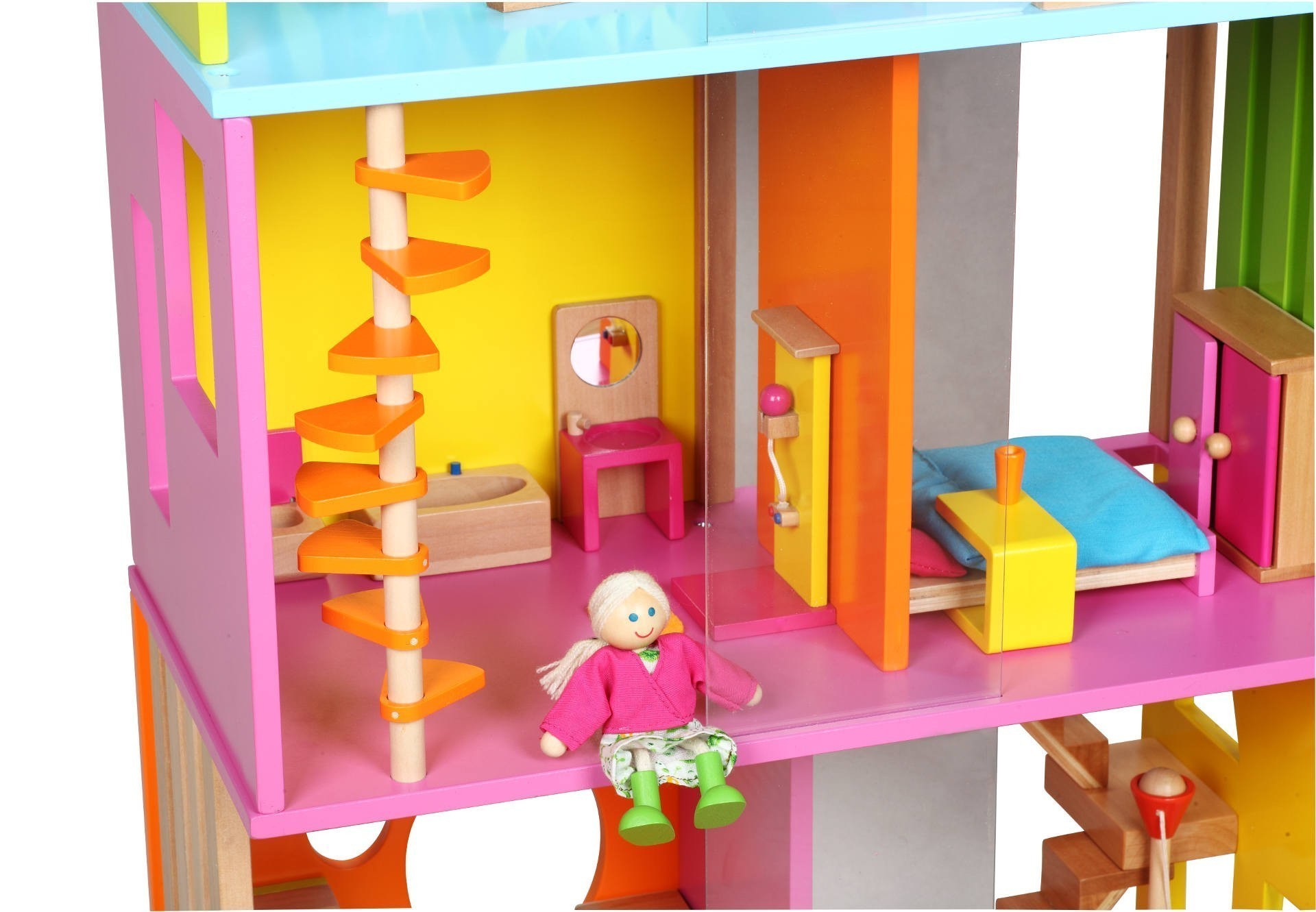 Винаги можете да закупите евтина картонена къща за кукли, с която детето ви да си играе, но възможността тя запази дълго безупречното си състояние е минимална. Не и при ежедневна употреба. Различното при тази дървена къща за кукли е не само модерният ѝ дизайн, но и качеството на материал и изработка.