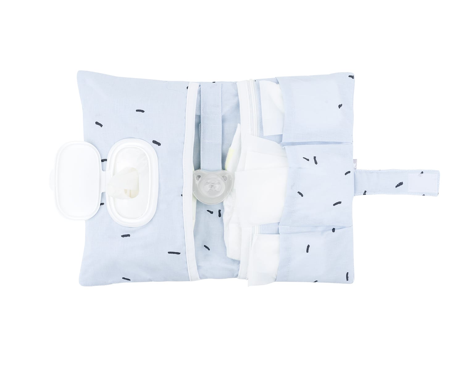 Този модел е разработен с грижа към детето и с желание да улесни всеки ден на родителите. Комбинацията от • Несесер за памперси, изработен от 100% памук, пълнеж: 100% полиестер, отделение с отвор за мокри кърпи, джоб за памперси, джоб с цип и 3 отворени джоба за принадлежности, държач за биберон, лесно закопчаване с велкро, размер в затворено положение: 18х25х2 см осигурява удобство, стабилност и усещане за спокойствие при всяко използване. Функционалността е съчетана с комфорт, за да може детето да се чувства добре, а родителите – по-спокойни. Функционалността е съчетана с комфорт, за да може детето да се чувства добре, а родителите – по-спокойни. Така продуктът се превръща в доверен помощник в грижата за детето.