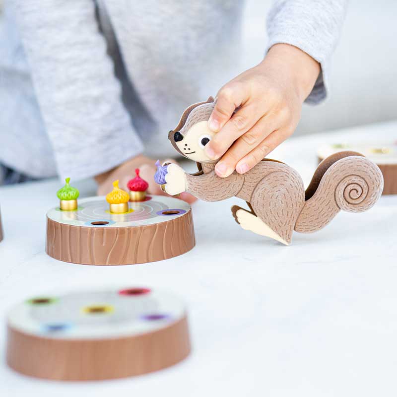 Крадливата катерица е супер готина и цветна образователна игра, развиващата фината моторика на вашите деца.