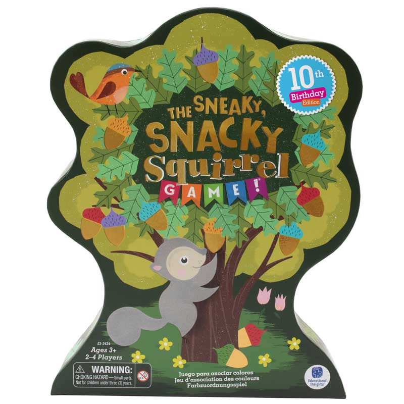 За своя 10-ти рожден ден от Educational Insights решават да зарадват всички вас със специално колекционерско издание на тяхната най-продавана игра за предучилищна възраст – Крадливата катерица. Любителите на тази играчка ще се сдобият с всички забавления на оригиналния комплект плюс меки, пухкави Sneaky Squeezers, златни жълъди и специално направена за повода опаковка.