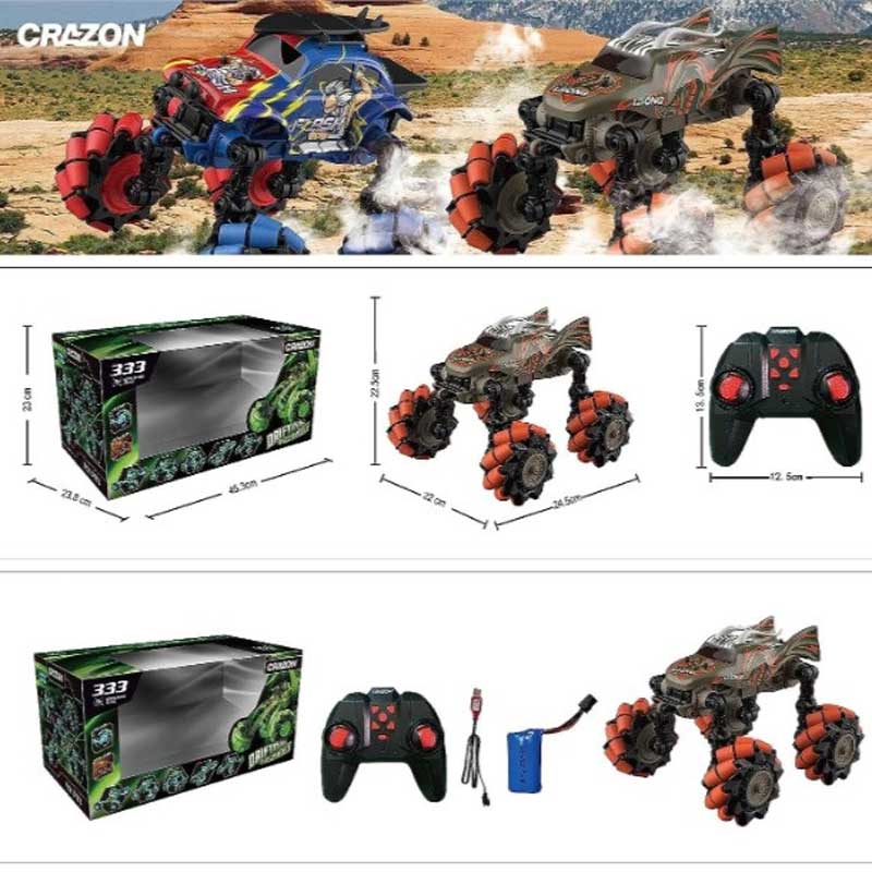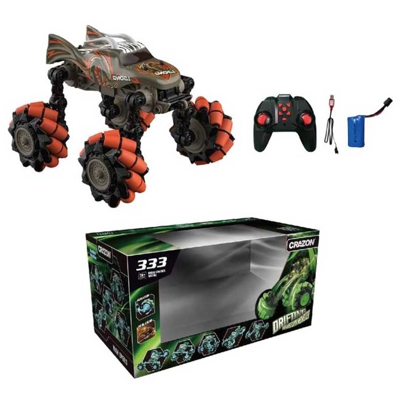 Няма по-страхотен подарък за малките ентусиасти от джип на марката Crazon, проектиран за опасни дрифтове! Той е висок клас офроуд автомобил, с еластични и здрави гуми, предназначени за всякакви настилки, с цел стабилно и прецизно каране. Колелата предлагат 5 вариции на сгъване, във всякакви позиции за най-екстремните приключения. Те са проектирани от издръжлива материя, която създава добро сцепление и баланс по време на острите завои. Окачването е стабилно, а различният дизайн прави офроуд джипа атрактивен и открояващ се. Някои от функциите на продукта включват бързи маневри и движение в 4-те посоки с ефектни светлини. Управлението е безжично, чрез дистационно управление, като сигнала му достига до 25 метра. Създайте незабравими моменти и преодолейте всички опасни писти с офроуд джип от Crazon!