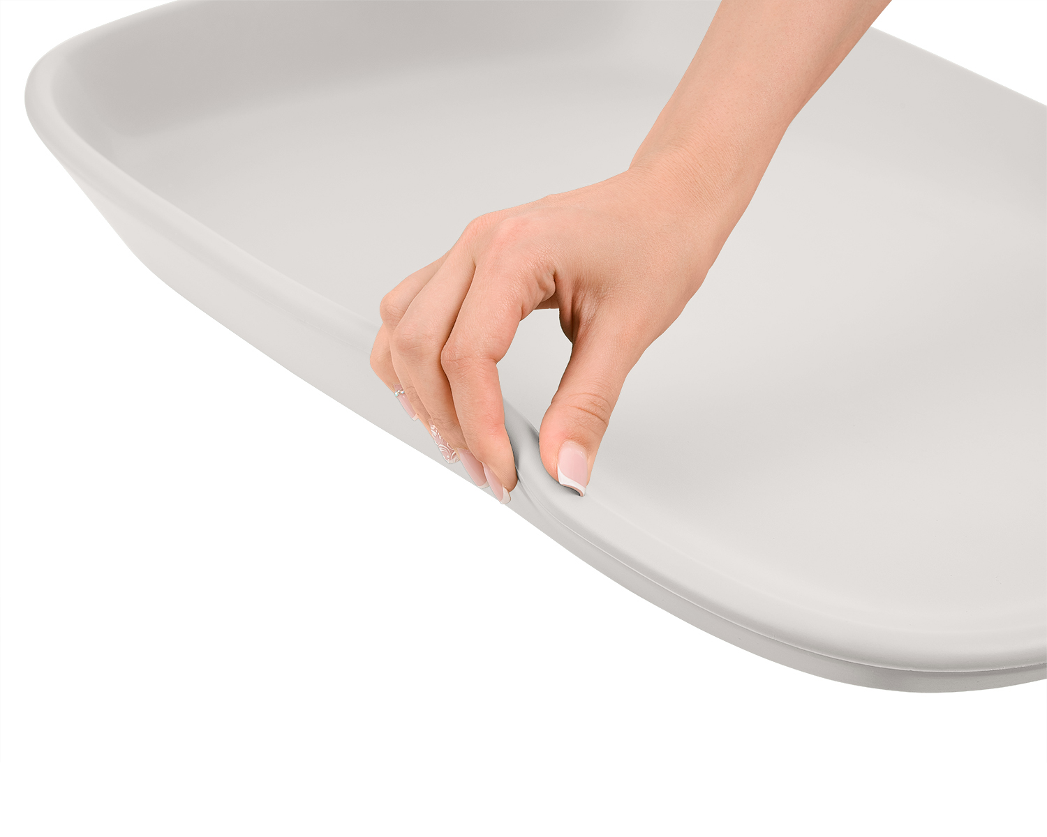 • Повдигнат страничен контур за безопасност и нежно ограничаване на движенията на бебето