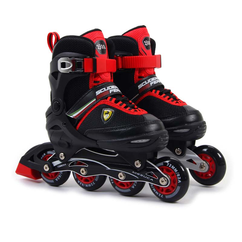 Черни ролери Ferrari за деца от серията FK16, подходящи и за тийнейджъри заради няколкото регулируеми размера, които са налични за серията. Те се предлагат в още няколко цвята – червени ролери Ferrari, жълти и бели. Ролерите Ферари са добър начин детето ви да развива уменията си за баланс и координация, а тези модели могат да бъдат използвани за дълъг период от време, превръщайки игрите навън в споделено спортно изживяване.