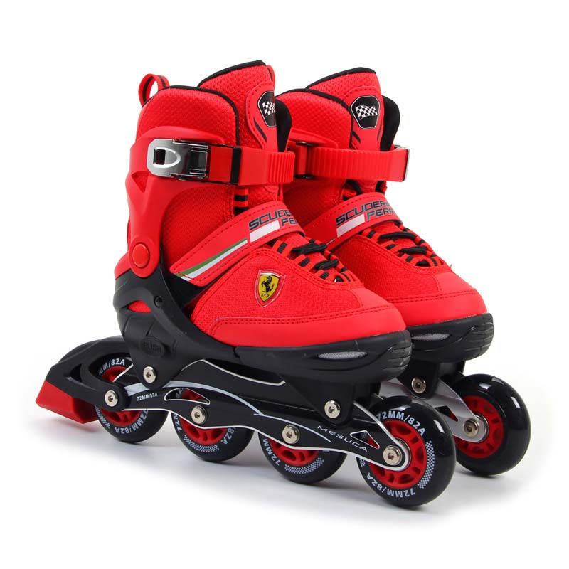 Червени ролери Ferrari за деца от серията FK16, подходящи и за тийнейджъри заради няколкото регулируеми размера, които са налични за серията. Те се предлагат в още няколко цвята – черни ролери Ferrari, жълти и бели. Ролерите на Ферари са добър начин детето ви да развива уменията си за баланс и координация, а тези модели могат да бъдат използвани за дълъг период от време, превръщайки игрите навън в споделено спортно изживяване.