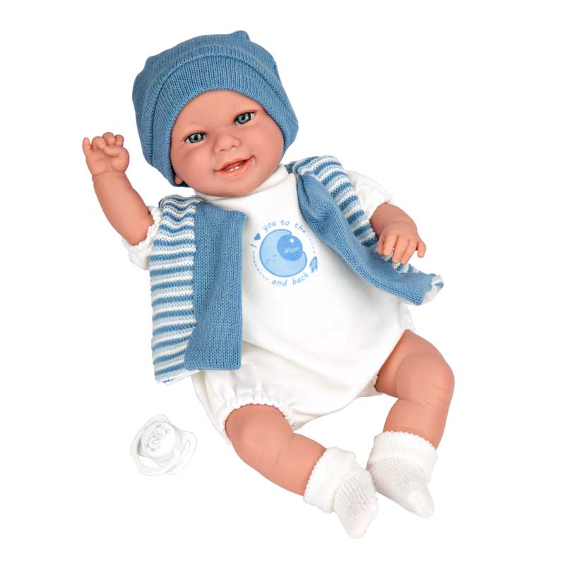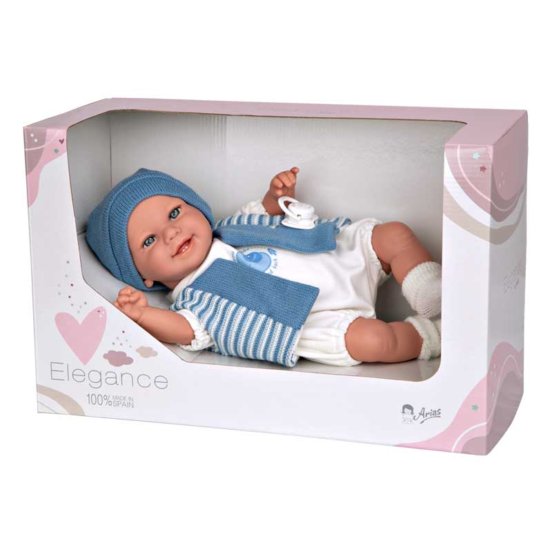 Куклата се казва Матео и е част от впечатляващата колекция Elegance на испанската марка Arias.Създадена е по уникаленреалистичен дизайн, с размер 35 см и може да движи ръце и крака. Моделът есъздаден от висококачествен винил с много любов и внимание към детайла.Материалът е напълно безопасен за малките деца и много приятен на допир. Тазикукла е подходяща за забавление както у дома, така и на открито.