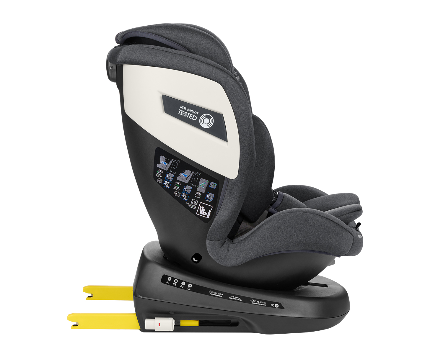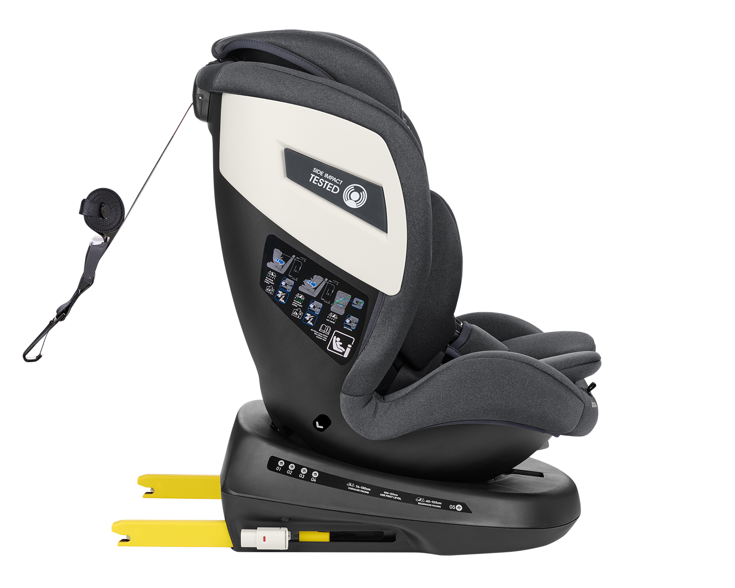 Този модел е разработен с грижа към детето и с желание да улесни всеки ден на родителите. Благодарение на интелигентна горна лента (Smart top tether) – седалката е снабдена със звукова сигнализация, която гарантира, че горната лента остава затегната, подходящo за използване в посока обратна на движението от 40 до 105 см, регулируем наклон на седалката в 4 позиции в посока на движението и 1 позиция в посока обратна на движението, • i-SIZE (40-150 см), подходящо за използване по посока на движението от 76 до 150 см, 360 градуса въртене на седалката продуктът се вписва лесно в динамичното ежедневие на родителите. Всеки елемент е подбран така, че да улесни грижата за детето и да намали напрежението в забързаното ежедневие. Този продукт е подходящ за моменти на игра, разходки и ежедневни занимания. Идеален е за тези, които искат да съчетаят практичност, комфорт и грижа.