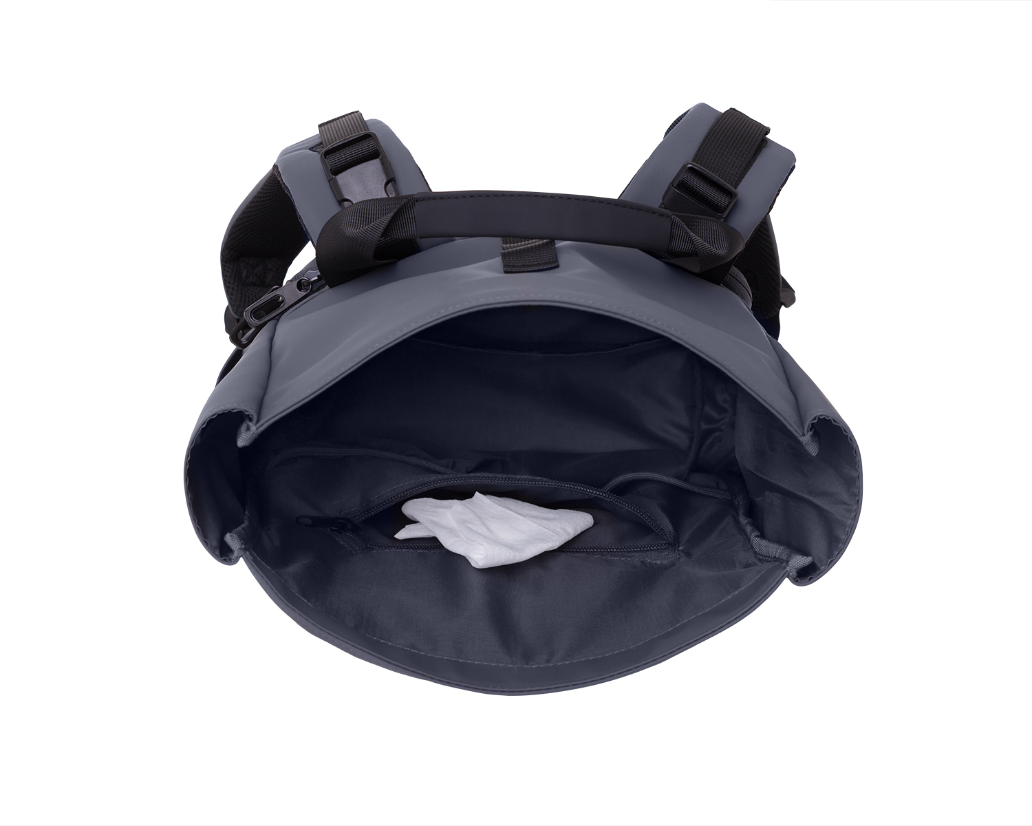 • Широк отвор на основния джоб с магнитно затваряне и навиване с тока