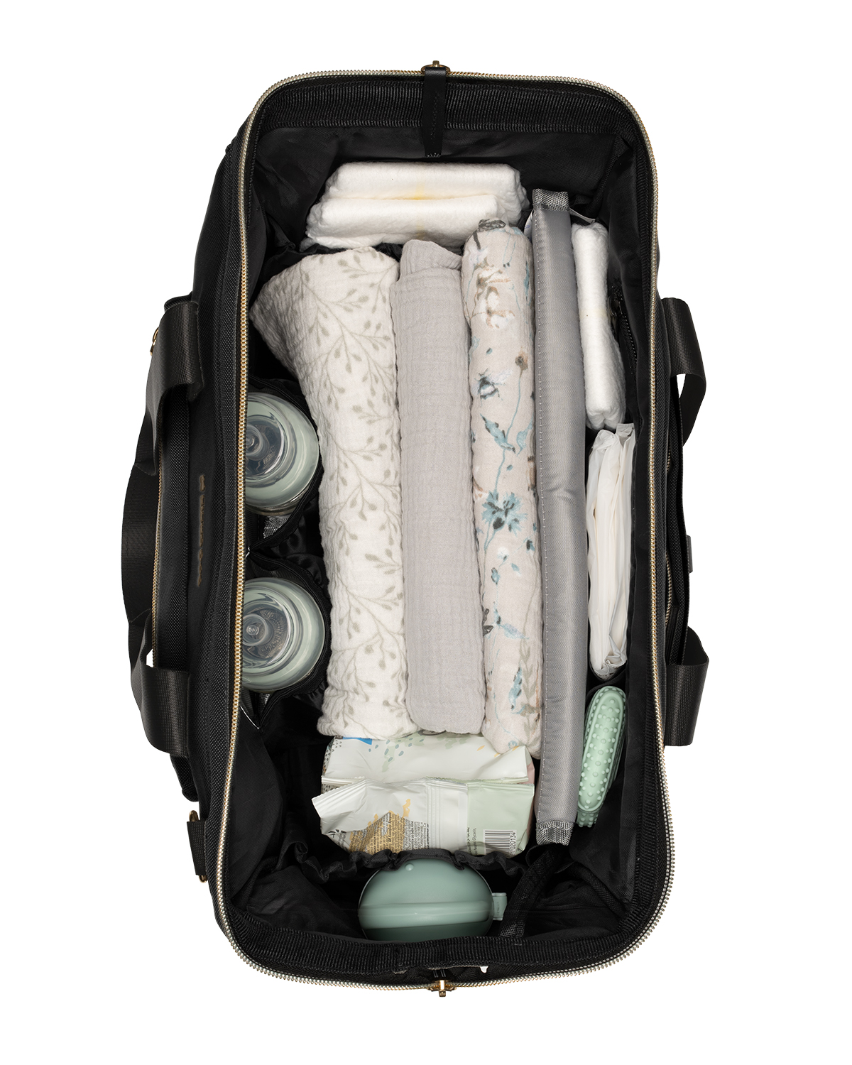 Този модел е разработен с грижа към детето и с желание да улесни всеки ден на родителите. Характеристики като • Луксозна материя и сатенирани детайли, преден и заден външен джоб с цип и открити странични джобове с лесен достъп, включена подложка за повиване, вътрешни джобове за пелени и аксесоари, широк отвор на основния джоб за по-лесен достъп, закачалки за лесно прикрепяне към дръжката на количката показват вниманието към детайла и стремежа към комфорт и сигурност. Този продукт е подходящ за моменти на игра, разходки и ежедневни занимания. Дизайнът е съобразен с реалните нужди на семействата и с желанието всичко да бъде по-лесно и подредено. Подходящ е за родители, които ценят качеството, сигурността и спокойствието.