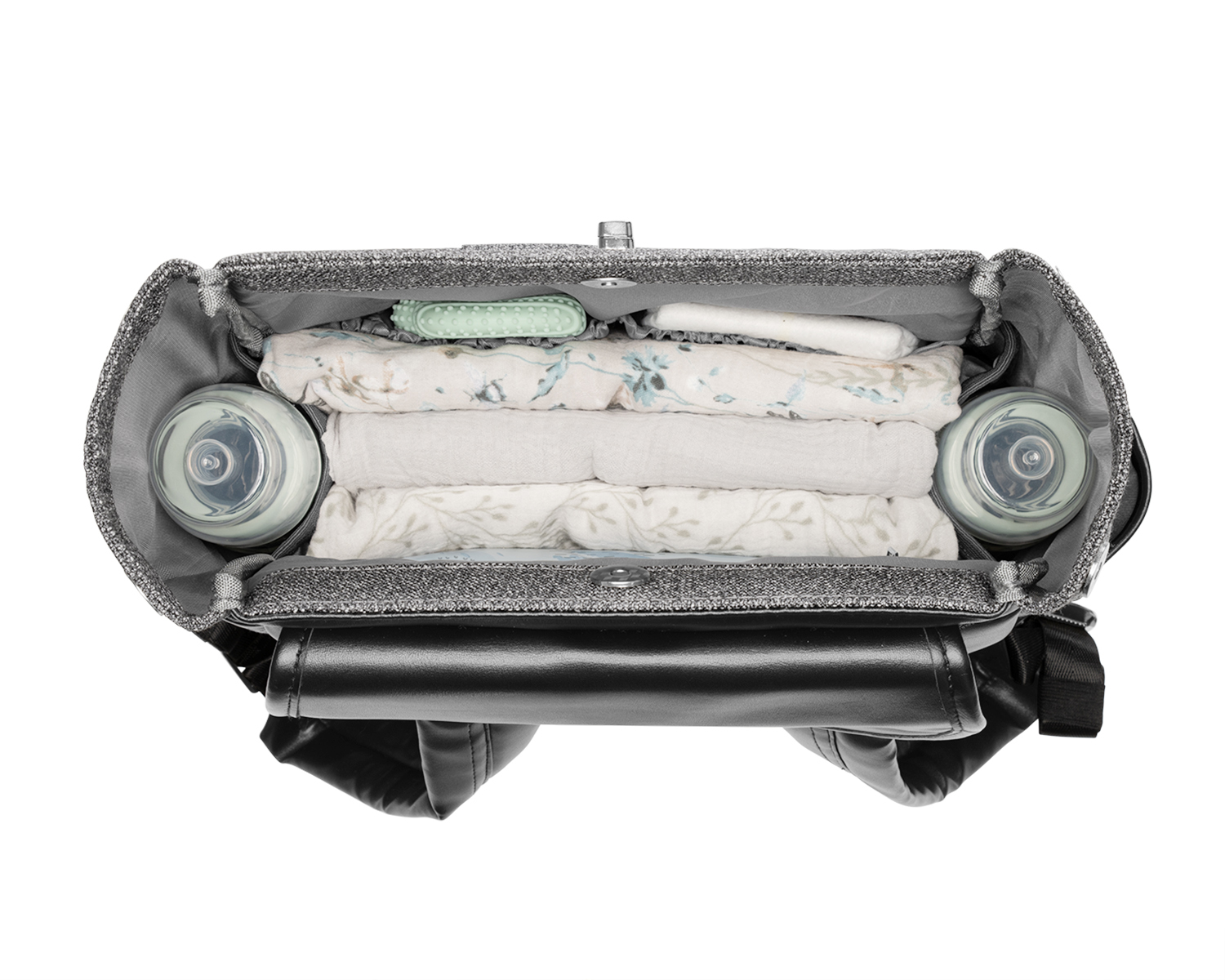 С мисъл за комфорта на детето и удобството в ежедневието, този продукт се отличава с внимателно подбрани детайли. Комбинацията от • Луксозна структурирана материя и кожени детайли, закачалки за лесно прикрепяне към дръжката на количката, магнитни копчета и метална закопчалка с въртене при основното отделение позволяват лесно отваряне и затваряне на чантата с една ръка, джобове за пелени и аксесоари, непромокаем джоб за мокри предмети, 2 термоизолирани джоба за шише, които запазват температурата в продължение на часове осигурява удобство, стабилност и усещане за спокойствие при всяко използване. Този продукт е подходящ за моменти на игра, разходки и ежедневни занимания. Функционалността е съчетана с комфорт, за да може детето да се чувства добре, а родителите – по-спокойни. Подходящ е за родители, които ценят качеството, сигурността и спокойствието.
