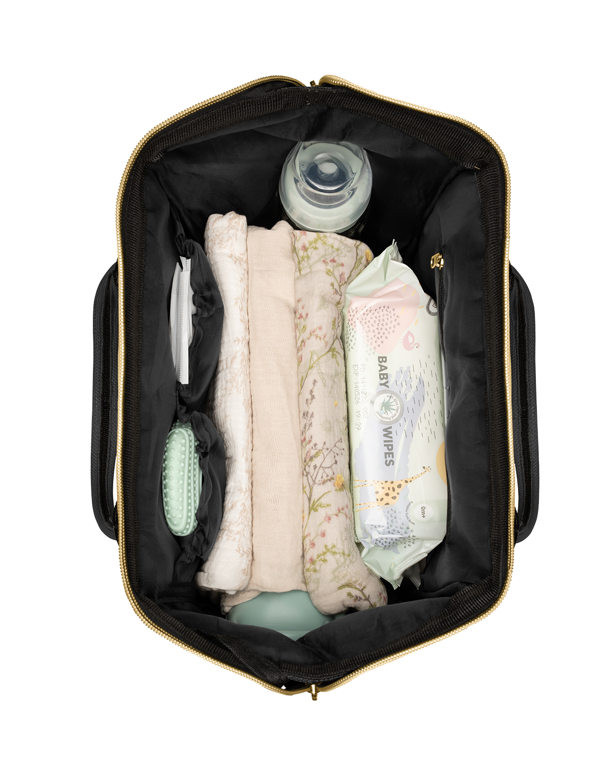 Този продукт е създаден с внимание към нуждите на най-малките и спокойствието на родителите. Характеристики като закачалки за лесно прикрепяне към дръжката на количката, широк отвор на основния джоб с метална рамка за лесен достъп, непромокаем джоб за мокри предмети, • Луксозна материя и сатенирани детайли, включена подложка за повиване, джобове за пелени и аксесоари показват вниманието към детайла и стремежа към комфорт и сигурност. Всеки елемент е подбран така, че да улесни грижата за детето и да намали напрежението в забързаното ежедневие. Дизайнът е съобразен с реалните нужди на семействата и с желанието всичко да бъде по-лесно и подредено. Така продуктът се превръща в доверен помощник в грижата за детето.