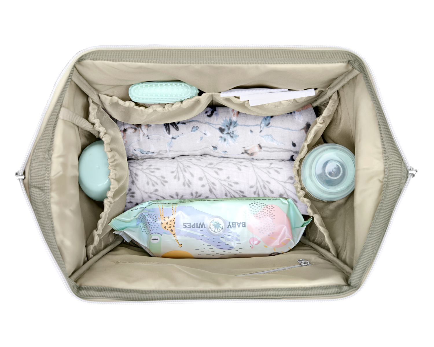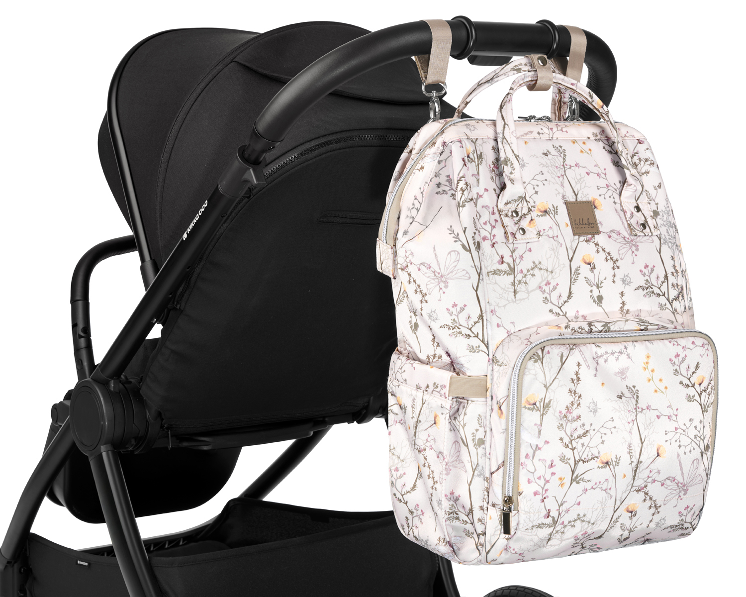 Създаден, за да донесе повече уют, сигурност и лекота в ежедневието на семейството. Благодарение на джобове за пелени и аксесоари, непромокаем джоб за мокри предмети, • Луксозна материя и сатенирани детайли, включена подложка за повиване, закачалки за лесно прикрепяне към дръжката на количката, широк отвор на основния джоб с метална рамка за лесен достъп продуктът се вписва лесно в динамичното ежедневие на родителите. Всеки елемент е подбран така, че да улесни грижата за детето и да намали напрежението в забързаното ежедневие. Този продукт е подходящ за моменти на игра, разходки и ежедневни занимания. Идеален е за тези, които искат да съчетаят практичност, комфорт и грижа.